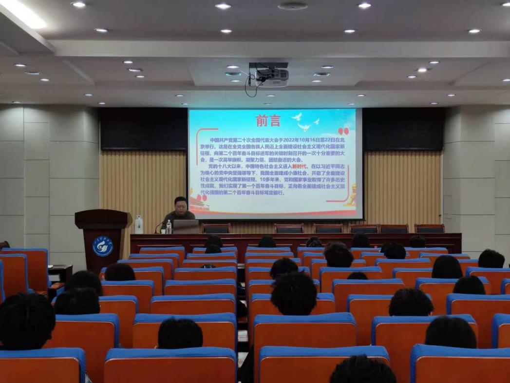 校党委统战部常务副部长王永君以“增强文化自信,传承中华优秀传统文化”为主题,激励同学们坚定增强文化自信,“知所从来,识其所在”,立足波澜壮阔的中华五千多年文明史,真正理解中国道路的历史必然、文化内涵与独特优势,将中华文化融入中国式现代化的伟大实践中,共同努力创造属于我们这个时代的新文化。