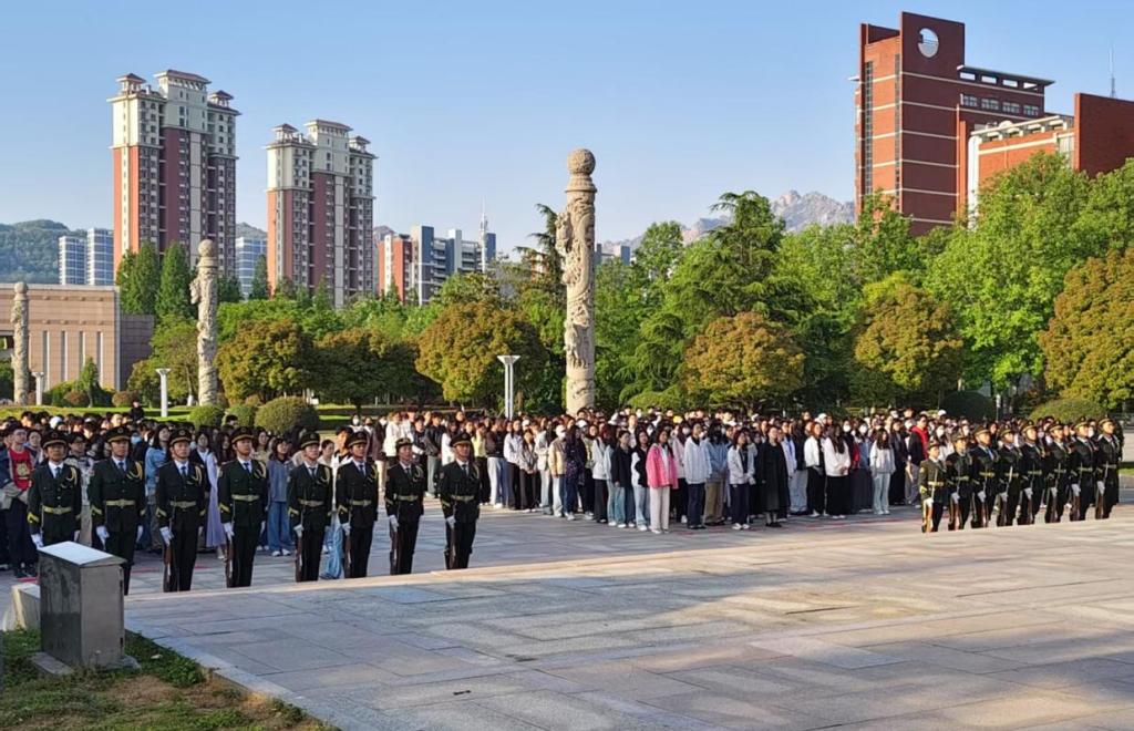 5月12日,外国语学院在泰山广场隆重举行升旗仪式暨“赓续五四薪火·勇担时代使命”主题教育活动,学院党委副书记兼副院长刘强、团委全体辅导员老师及全体学生参加此次升旗仪式。