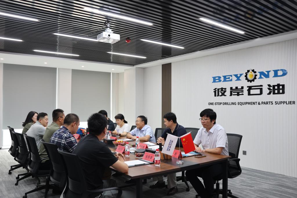 李庆学一行先后走访了山东英讯矿产品有限公司和山东彼岸石油装备有限公司,看望了公司负责人2006级英语专业校友孙行行、2005级英语专业校友赵秀东及其他校友。走访期间,李庆学向校友们介绍了学院在人才培养、学科建设、师资队伍、科学研究等方面取得的新进展,并希望校友们持续关注学院发展,积极发挥企业资源优势,为学院建设贡献力量。