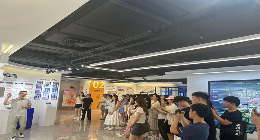 26日下午,同学们首站抵达中国(山东)自由贸易试验区青岛片区会客厅。在一楼综合展厅,通过视频介绍,大家系统了解了自贸片区的战略定位、产业规划和发展目标。随后,讲解员带领大家逐一参观各个板块,重点解读了航运贸易、先进制造、现代金融等核心产业布局,以及自贸区在营商环境优化、制度创新等方面的突破。在青岛才企综合服务集团有限公司,同学们实地体验了法律咨询、财税服务等一体化企业配套,深刻体会到人才服务在区域经济发展中的支撑作用。