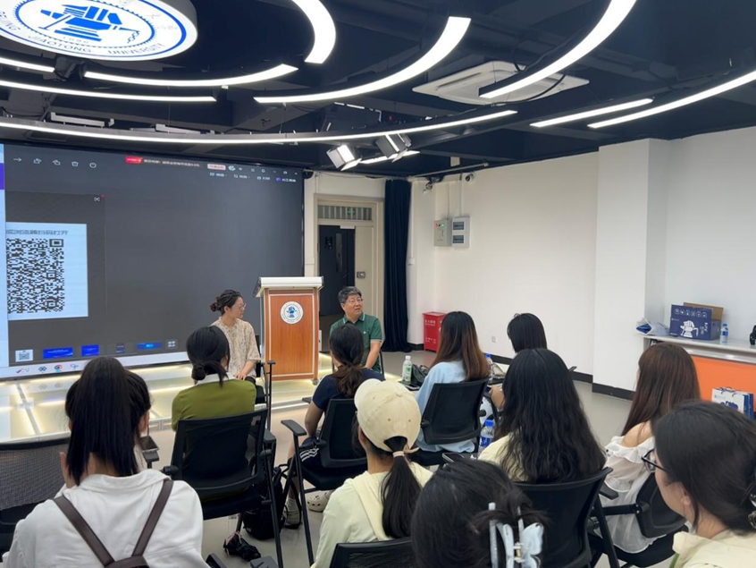 语言与传播学院副院长刘凯介绍了学院“新文科”建设成果,实验室主任范书成带领大家参观了实验教学中心,以“AI赋能外语教学及智能体建设”为主题,介绍人工智能技术在学院外语教学中的创新应用成果,展现了AI技术与外语教学深度融合的最新实践。王云彤副教授结合自身丰富的教学实践经验,围绕“AI时代英语人的职业发展与能力提升”与同学们展开交流,王老师表示,在人工智能时代,外语人才要培养“语言+技术”的复合能力,既要夯实专业基础,又要拥抱技术创新。