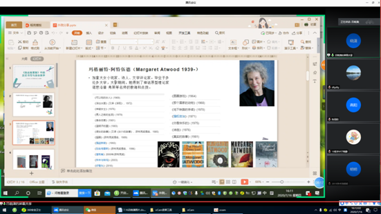 吕老师从知识话语、日常生活实践、身体一元论等西方哲学理论入手,结合小说文本细读,深入浅出地为大家讲解了她的研究,为讲座参与者更多了解加拿大文学及阿特伍德作品提供了契机,开拓了英语文学研究的视野。(通讯员:郭放)