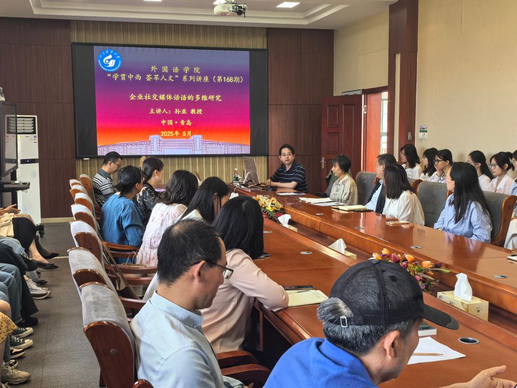 孙亚教授以“企业社交媒体话语的多维研究”为主题,围绕企业社交媒体在当代传播生态中的功能定位,深入剖析其话语的叙事特征、互动机制与语言策略。报告通过翔实的案例分析和系统的理论阐释,展示了该研究领域的最新进展与广阔前景。孙教授重点指出,随着企业传播逐步走向数字化、社交化,社交媒体话语逐渐形成独特的表达范式,其多维特征不仅体现于语言形式,更关涉身份构建、情感联结与品牌塑造。互动环节,师生踊跃提问,孙教授一一作出细致解答,现场交流气氛热烈。