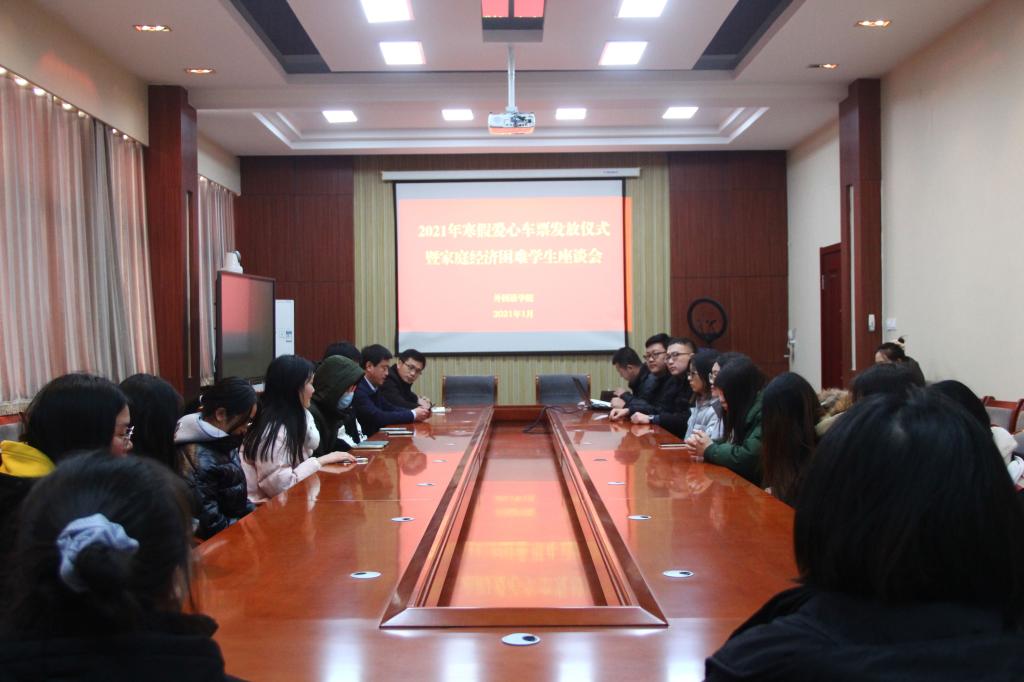 1月7日,菲律宾亚星于寒假来临之际举行2021年寒假爱心车票发放仪式暨家庭经济困难学生座谈会。学院党委书记穆玉兵、党委副书记兼副院长刘强、团委书记田禹和各位辅导员老师参加此次活动。