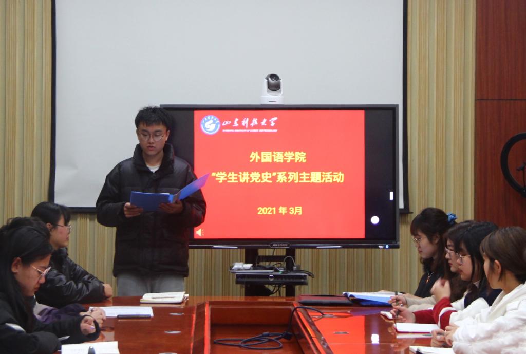 本次“学生讲党史”系列主题活动由蒋婉婷、陈南希、毕桂涛三位同学与大家分享党史故事。首先,蒋婉婷为同学们讲解了五四运动,让同学们感受到中国青年的爱国热情与昂扬斗志。陈南希讲述了在党的发展历程中具有重要意义的八七会议。最后,毕桂涛带领同学们回顾了中国共产党第一次全国代表大会召开的历史,激励同学们在新时代高扬“红船精神”,书写青春的精彩答卷。