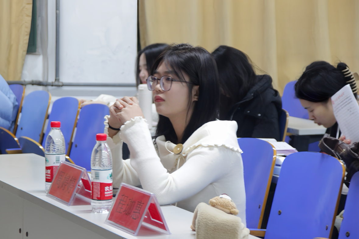 交流会上,程珈惠讲述了自己参与科创项目竞赛的经历,分析了线上线下答辩的经验,同时对其他相关竞赛进行介绍,让学生们对科创比赛有了整体认知。周婷婷以“打破专业壁垒,创造无限可能”为主题,强调外语专业学生在语言沟通、跨文化理解方面的优势,指出了明确阶段目标和严谨选择团队成员的重要性。