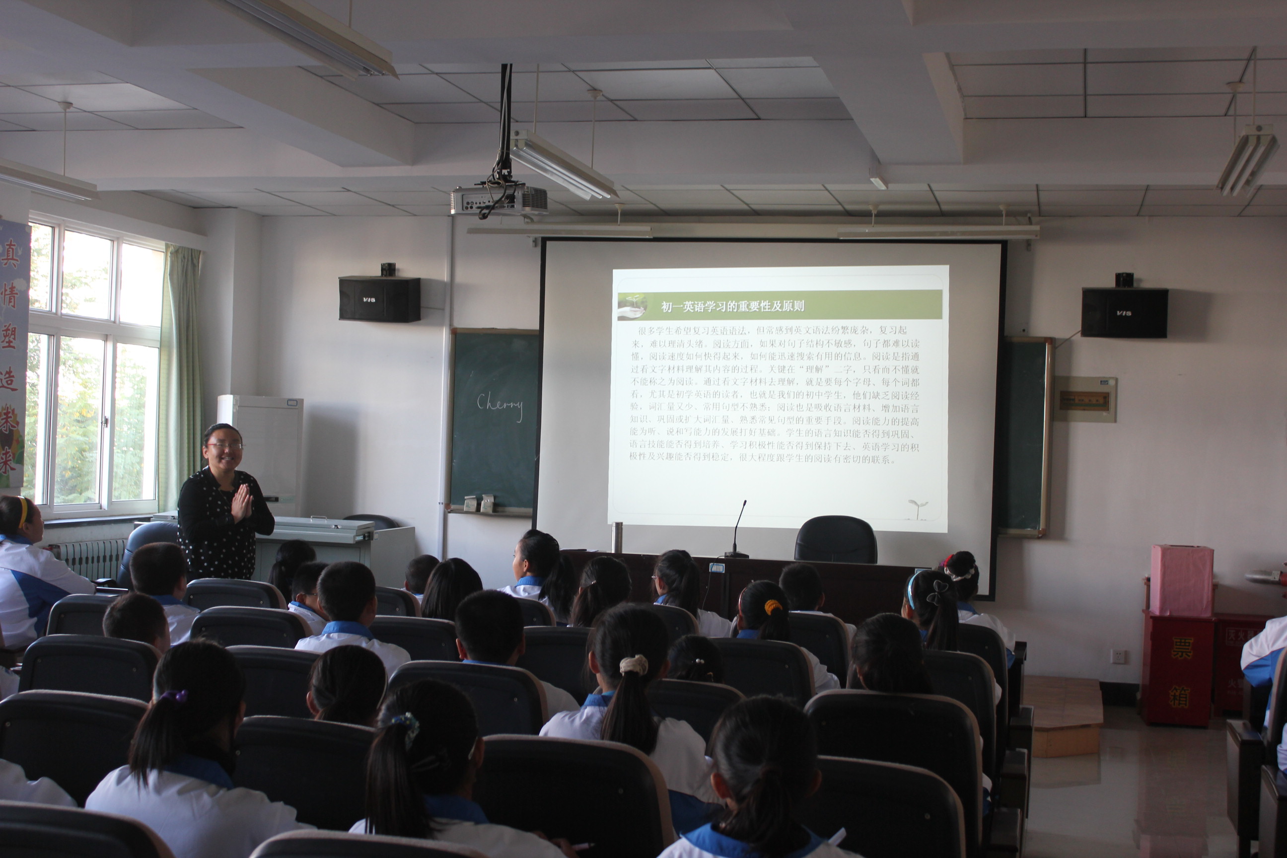 随后,宋燕副院长与宋建福老师分别随堂听取了该校部分教师的讲课情况。宋燕副院长在杨天世校长的陪同下与英语组没课的老师听了初中一年级2班和初中二年级7班的课;宋建福老师在邹明佳副校长的陪同下听了初中一年级4班和7班的课。与此同时,孔昭莉老师在报告厅为初一学生四个班做了两场题为《英语学习的重要性及如何学好英语》的报告。